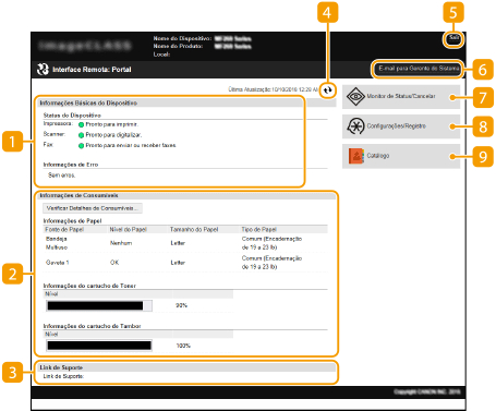 Quando você acessa a Interface Remota, a seguinte página do Portal aparece. Esta seção descreve os itens exibidos na página do Portal e as operações básicas.