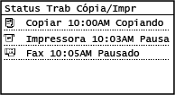 Exibe o status atual do item selecionado. Você pode verificar os status de <Trabalho de TX>,<Trabalho de RX> e <Erros de Encaminhamento de Fax>. A tela <Trabalho de Cópia/Impressão> é exibida abaixo como um exemplo.