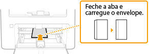 Carregue os envelopes monarca, No. 10 (COM10), DL ou C5 na orientação retrato (com as bordas curtas voltadas para a máquina), com o lado sem cola (lado frontal) voltado para cima. Você não pode imprimir no lado inverso dos envelopes.