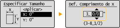 Especifique o comprimento do lado <X> e o lado <Y>.