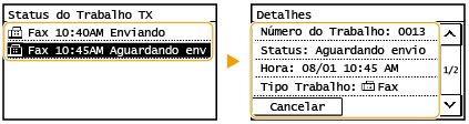 Quando <Exibir Log do Trabalho> está definido como <Desativado>, você não pode verificar os registros de comunicação. <Exibir Log do Trabalho> |