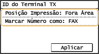 Especifica a posição para imprimir as informações de ID do terminal no fax enviado. Selecione <Na Área de Imagem> para imprimir as informações dentro da área da imagem ou <Fora da Área de Imagem> para imprimir as informações fora da área da imagem.