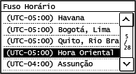 Defina <Fuso Horário> antes de definir a data e o horário atual. Se a configuração <Fuso Horário> for alterada mais tarde, a data e o horário atual também são alterados de forma correspondente. |