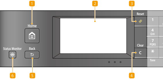 Púlsela para consultar el estado de impresión o fax, para ver el historial de uso o para ver las opciones de red, como puede ser la dirección IP del equipo. Asimismo, podrá consultar el estado del equipo, como por ejemplo, el tamaño de papel y la cantidad restante en el cartucho de tóner, etc. o si se han producido errores.