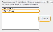 Seleccione una dirección IP y haga clic en [Eliminar].
