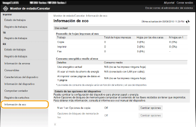 Para realizar las siguientes operaciones, necesitará en primer lugar iniciar una sesión en Modo de administrador del sistema. Haga clic en [Activar] y establezca [Usar bloqueo de memoria] en [On].