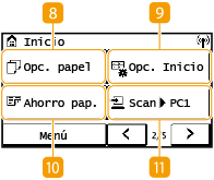 <Opc. Inicio>Permite cambiar el orden en el que se muestran los botones de la pantalla Inicio. Personalización de la pantalla Inicio
