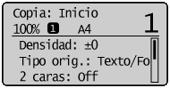 (COPY/SCAN), aparecerá la pantalla principal de la función seleccionada. La pantalla principal de copia se muestra a continuación como ejemplo.