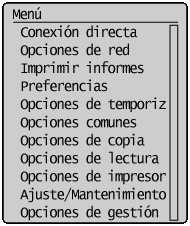 , aparecerá la pantalla <Menú>. En esta pantalla, podrá comenzar a especificar las opciones de configuración generales del equipo, como las <Preferencias> o las <Opciones de temporizador>, así como gran parte de los ajustes de cada función, como las opciones de copia y escaneado.