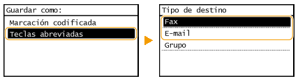Seleccione <Número de fax> o <Dirección de e-mail>.