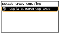 Si ha transcurrido mucho tiempo desde que se escaneó el original que se va a copiar, pero la impresión no ha comenzado todavía, es posible que necesite ver la lista de espera de los documentos que se van a imprimir.