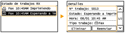 Seleccione <Estado de trabajos> y seleccione el documento cuyo estado desea comprobar.