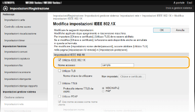 Selezionare la casella di controllo [Utilizzo TTLS] o [Utilizzo PEAP].