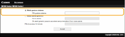 Inserire il PIN corretto in [PIN gestore sistema] per accedere al modo gestore sistema.