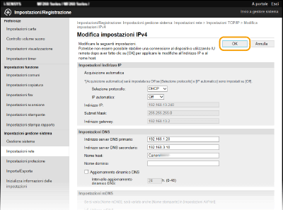 Per sapere se è necessario riavviare la macchina, leggere il messaggio sulla schermata di modifica.