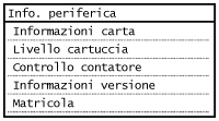 Visualizza lo stato della macchina, ad esempio il formato carta o la quantità di toner rimanente nelle cartucce toner.
