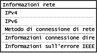 Visualizza le impostazioni di rete, come l'indirizzo IP della macchina, e lo stato, come la condizione delle comunicazioni LAN wireless.