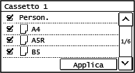 I formati carta non selezionati possono essere visualizzati selezionando <Altri form.> nella schermata di selezione delle impostazioni dei formati carta.