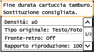<Fine durata cartuccia tamburo. Sostituzione consigliata.>/<Fine dur. car. tamb. Sostituz. consigliata.>