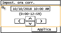Impostare <Fuso orario> prima di impostare ora e data correnti. Se si modifica l'impostazione <Fuso orario>, vengono modificate di conseguenza anche data e ora correnti.