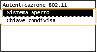 Quando si collega a una LAN wireless la macchina rileva un errore di autenticazione se la chiave di autenticazione condivisa è impostato sul router wireless. Se ciò accade, la macchina modifica automaticamente l'impostazione su <Chiave condivisa> e riprova a connettersi.