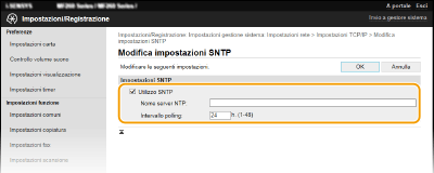 Selezionare la casella di controllo [Utilizzo SNTP] e specificare le impostazioni richieste.