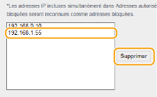 Sélectionnez une adresse IP, puis cliquez sur [Supprimer].