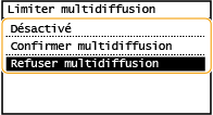 Vous pouvez interdire l'envoi d'un fax à plusieurs destinataires simultanément (Multidiffusion).