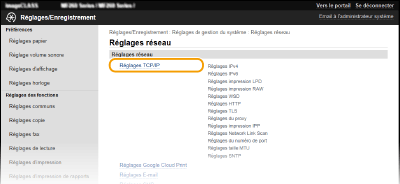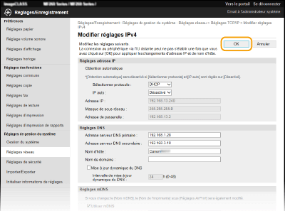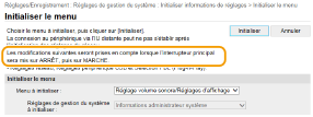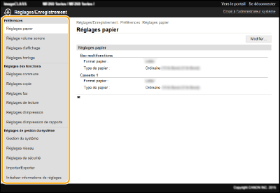Vous ne pouvez modifier certains réglages que si vous êtes connecté en Mode administrateur système.