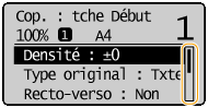 pour faire défiler l'écran vers le haut ou le bas. Les couleurs du texte et de l'arrière-plan d'un élément sont inversées lorsqu'il est sélectionné.