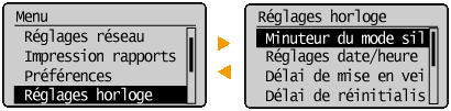 Vous pouvez modifier divers réglages concernant la fonctionnalité de l'appareil, tels que la luminosité de l'écran : <Réglages d'affichage>