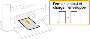 Chargez les enveloppes de manière à ce que le rabat soit vers la gauche de l'appareil comme illustré.