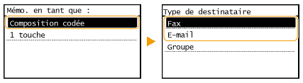 <Réglages fax>. Toutefois les réglages effectués à partir de <Carnet adr.> sont activés pour les réglages détaillés des destinataires enregistrés dans le carnet d'adresses. |