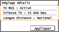 Configuration de paramètres détaillés (uniquement s'ils sont enregistrés pour un télécopieur)