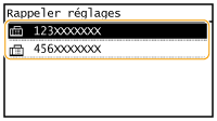 Vous pouvez rappeler des destinataires spécifiés antérieurement. Lorsque vous désignez un destinataire que vous avez déjà utilisé, l'appareil réutilise les mêmes réglages de télécopie que ceux qu'il a utilisés lors de l'envoi des documents au destinataire en question.
