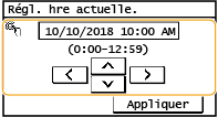 Définissez <Fuseau horaire> avant de définir la date et l'heure courantes. Si le réglage <Fuseau horaire> est modifié, la date et l'heure actuelles refléteront cette modification.