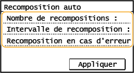 Cette option permet de définir l'intervalle entre les recompositions d'un numéro. Saisissez un nombre, puis sélectionnez <Appliquer>.