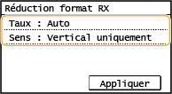 Sélectionnez <Vertical/Horizontal> pour réduire l'image à la fois verticalement et horizontalement. Sélectionnez <Vertical uniquement> pour ne réduire l'image que selon l'axe vertical.