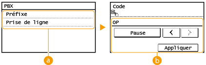 Sélectionnez le type de PBX que vous utilisez. Si vous sélectionnez <Préfixe>, enregistrez le code dans l'écran suivant.