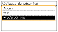 clé WEP (1 à 4).Il est possible d'enregistrer jusqu'à quatre clés WEP.