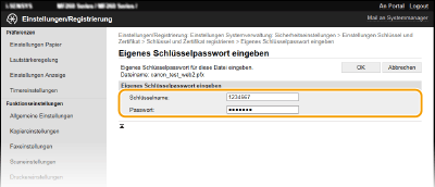[Einstellungen Schlüssel und Zertifikat] oder [Einstellungen CA-Zertifikat].