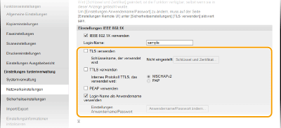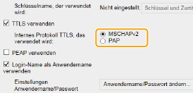 Aktivieren Sie das Kontrollkästchen [TTLS verwenden] oder [PEAP verwenden].
