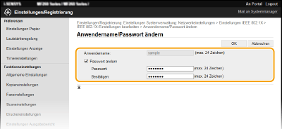 Klicken Sie auf [Anwendername/Passwort ändern].