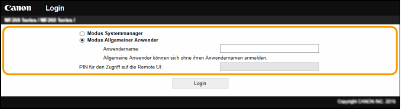 Wählen Sie [Modus Systemmanager] oder [Modus Allgemeiner Anwender].