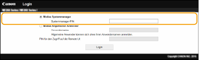 Geben Sie die richtige PIN in [Systemmanager-PIN] ein, um sich im Modus Systemmanager anzumelden.