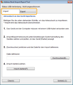 Verwenden Sie das Address Book Import/Export Tool, während das Gerät und der Computer über ein USB-Kabel verbunden sind.