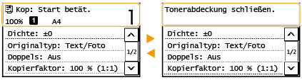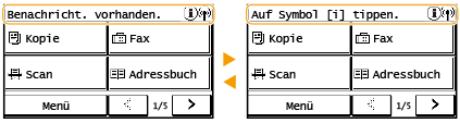 Wenn <Benachricht. vorhanden.> oder <Auf Symbol [i] tippen.> angezeigt wird (Touchpanel-Modell)