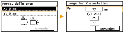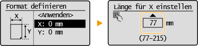 Geben Sie die Länge der <X>-Achse der Seite und der <Y>-Achse der Seite an.