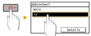 Die Originale wurden gescannt und sind zur Verarbeitung bereit. Wählen Sie das Dokument aus, dessen Vorgang abgebrochen werden soll, und wählen Sie <Ja>.