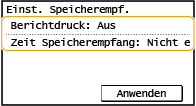 Legen Sie hier fest, ob beim Speichern von Dokumenten im Gerät jedes Mal ein Empfangsergebnisbericht gedruckt wird. Wenn Berichte gedruckt werden sollen, wählen Sie <Ein>. Sie müssen zudem <EM-Ergebnisbericht> auf <Ein> setzen.